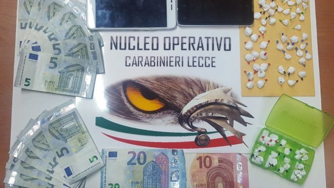Dopo aver osservato quel che appariva essere una cessione di droga, con un’azione congiunta tra il Nucleo Operativo e Radiomobile e le Stazioni di Lizzanello e Cavallino, i carabinieri sono intervenuti fermando il venditore. Si trattava di Christian Greco, trovato in possesso di circa 21 grammi di cocaina suddivisa in un’ottantina di piccolissime dosi, destinate proprio allo spaccio “al minuto”, nonché circa 100 euro provento dell’attività di spaccio.