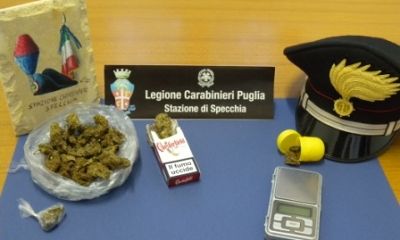 Nel pomeriggio di ieri, i Carabinieri della Stazione di Specchia, impegnati in un servizio di controllo del territorio, hanno notato due giovani miggianesi dirigersi verso Tricase a bordo della Fiat 600 di uno dei due. Allertati i colleghi di Tricase, i militari hanno immediatamente iniziato a pedinare i per capire dove stessero. L’auto due giovani si era fermata sotto l’abitazione di Francesco Vito Zippo, 23enne di Tricase.