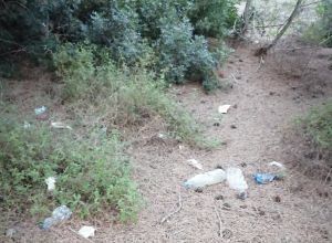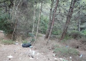 Un tappeto di plastica sotto i bellissimi pini e poi materassi, cartacce e addirittura copertoni. Il tutto retaggio certamente di allegre scampagnate di sporcaccioni o di conferimenti di rifiuti nel cuore della notte per evitarsi il fastidio di raggiungere le isole ecologiche.