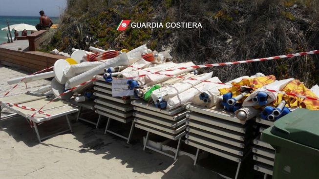 Si sono concluse poche ore fa le operazioni di sequestro di un ingente numero di attrezzature balneari nella località rivierasca di Spiaggiabella, marina del Comune di Lecce per occupazione abusiva di un’area demaniale marittima.