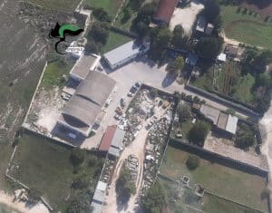 I Militari hanno accertato sul posto ciò che era stato evidenziato nella ricognizione aerea: cumuli di rifiuti depositati in modo incontrollato nelle pertinenze di un’ azienda (risultata autorizzata per il trasporto di rifiuti), in un’ area cinta da murature e chiusa da un cancello.