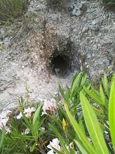 Seguendo le tracce, gli uomini in divisa sono riusciti ad individuare il cane che si nascondeva in una tana profonda. Le operazioni di cattura non sono state facili per la profondità della tana, ma grazie all’attrezzatura in dotazione alle Guardie si è riusciti a catturare il cane in modo sicuro ed indolore per l’animale.
