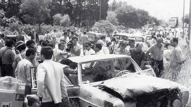 Le lancette dell’orologio avevano da poco segnato le 10:00 del 16 giugno 1982, quando la Mercedes fu bloccata poco prima dello svincolo per l’autostrada Palermo-Mazara del Vallo da due auto. La pioggia di proiettili non ha lasciato scampo. L’autista, morto sul colpo, ha perso il controllo della vettura che, dopo aver sbandato e invaso la corsia di marcia opposta, si è scontrata contro una Fiat 500 che passava di lì per caso. Il capo Scorta, Franzolin, riuscì ad uscire dall’auto impugnando la pistola nel tentativo di rispondere al fuoco, ma venne freddato all’istante. Quando una telefonata anonima indirizza gli uomini in divisa sul posto, la scena racconta di una tragedia. La Mercedes distrutta dai colpi d’arma da fuoco, un’altra danneggiata e, a pochi chilometri dal massacro, altre due, rubate a Palermo qualche mese prima e usate nell’agguato, avvolte dalle fiamme per cancellare le tracce.