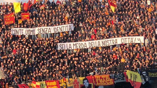 «Grazie ad una meticolosa analisi delle immagini registrate dal sistema di videosorveglianza interno allo stadio – scrivono nella nota dalla Questura di Lecce – i poliziotti hanno individuato il tifoso che di fatto ha srotolato una parte dello striscione predisponendolo per la successiva esposizione. Si tratta di N.D.P. di 36 anni, di Botrugno (Le), tifoso giallorosso riconducibile al sodalizio ultrà UL, il quale è stato denunciato alla locale AG per il reato di “divieto di esposizione di striscioni incitanti alla violenza o recanti ingiurie” previsto dalla normativa di settore. Per lui è in corso il procedimento amministrativo per l’irrogazione del DASPO da parte del Questore di Lecce e allo stesso verrà comminata la sanzione amministrativa per la violazione al regolamento d’uso interno dello stadio».
