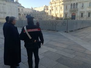 «Giunga tutta la mia solidarietà a tutte le forze dell’ordine troppo spesso sotto attacco da parte di gruppi che non conoscono il vivere civile e che fanno di tutto per mettere a rischio la quiete e la sicurezza della città» ha commentato l’arcivescovo avvicinandosi, dopo la messa, vicino alle scritte, dove i carabinieri stavano eseguendo i rilievi di rito prima di affidare agli operai della ditta che sta realizzando il presepe il compito della rimozione.