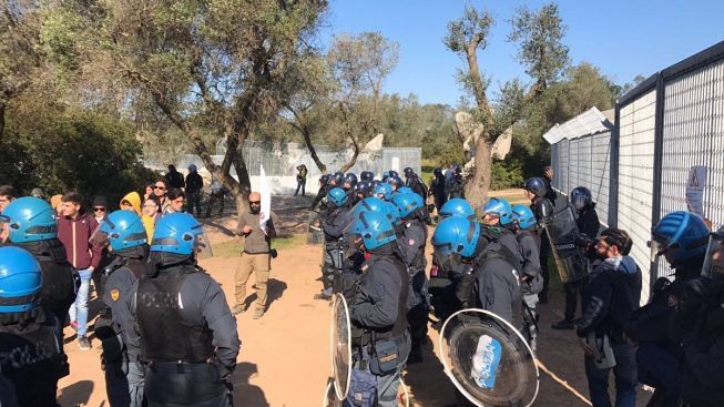 Dopo la carica cinque camion, su ciascuno dei quali erano stati messi due ulivi appena eradicati, sono usciti dal cantiere tra i fischi dei manifestanti mentre un elicottero ha sorvolato la zona.