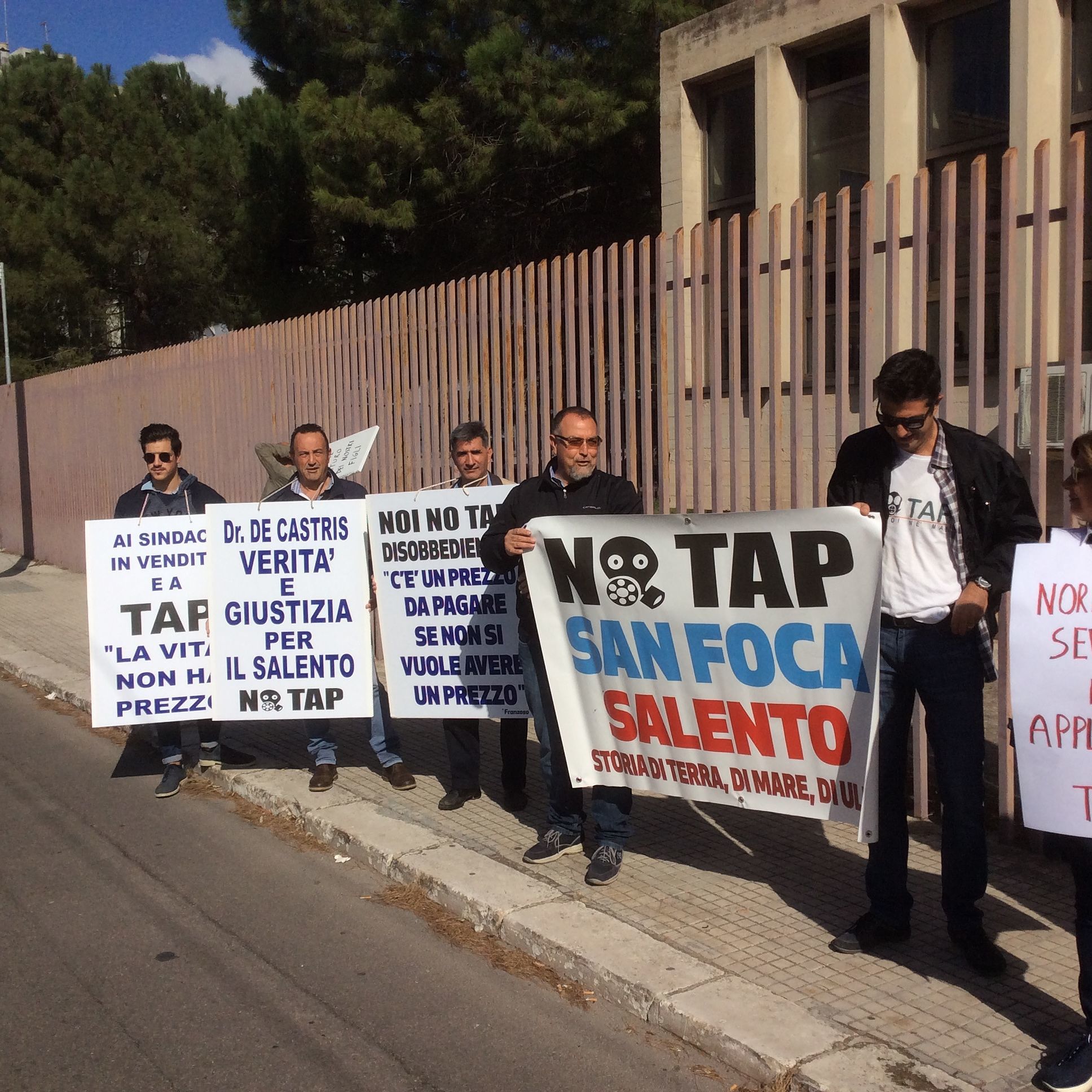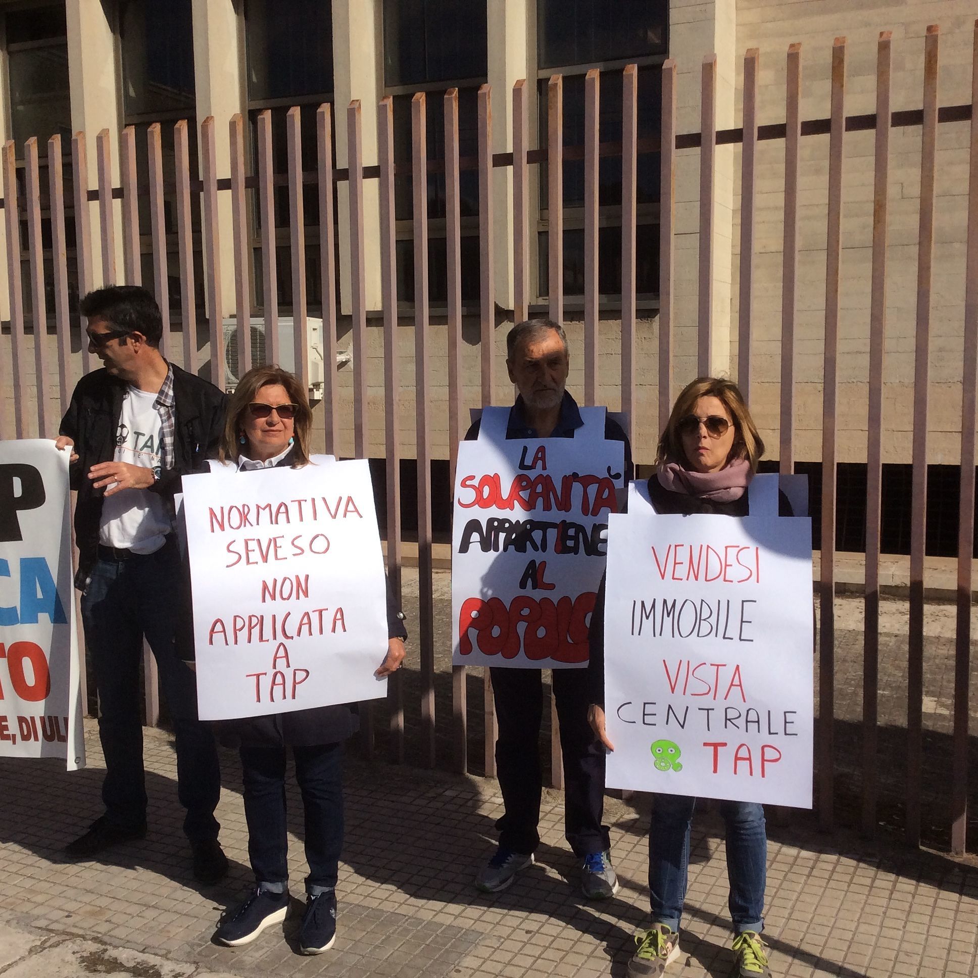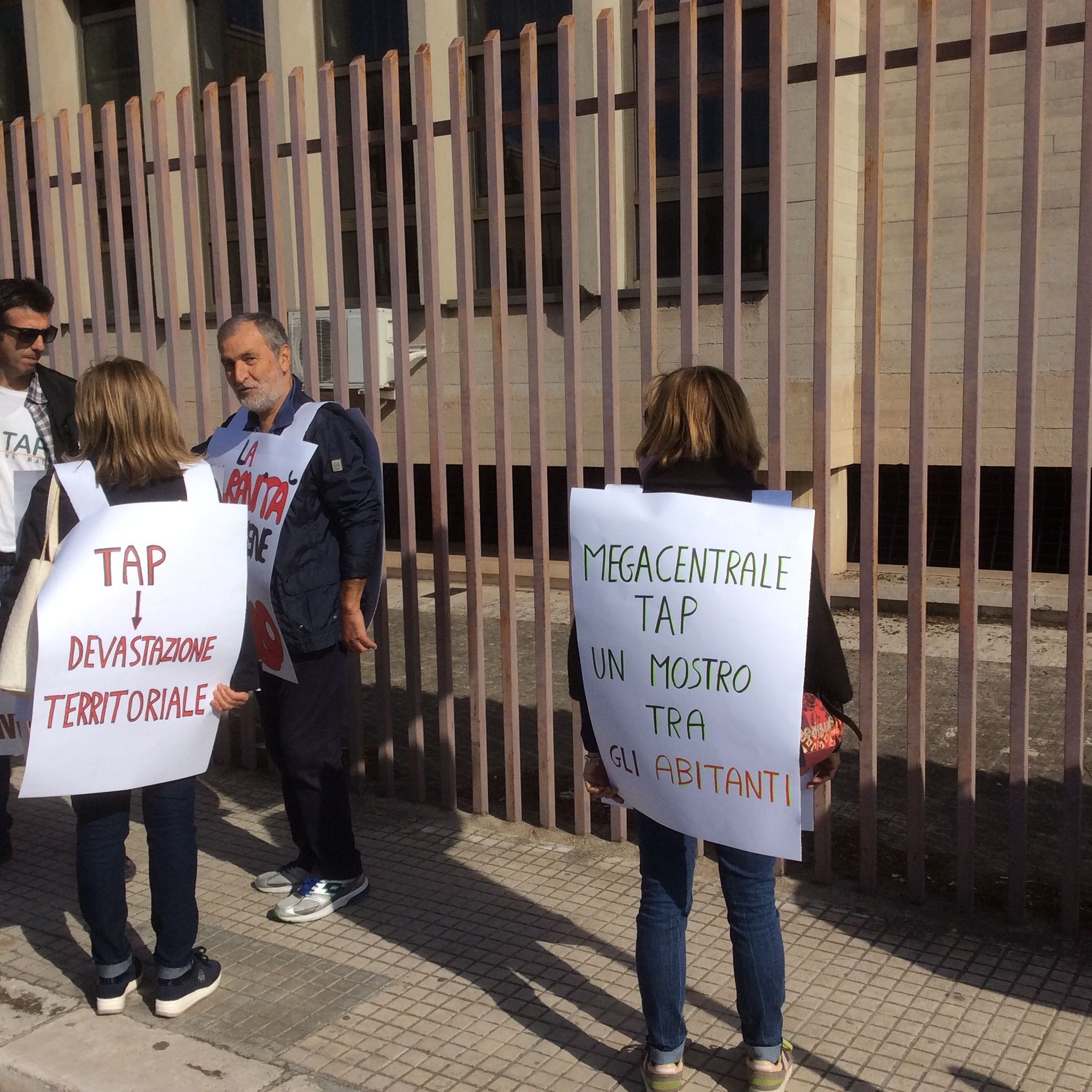 Mentre a San Basilio la tensione sale, questa mattina un gruppo di manifestanti dell’associazione Terra Mia – armati di striscioni – ha deciso di “spostarsi” a Lecce per un sit-in ai piedi del Palazzo di Giustizia.