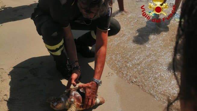 Nel pomeriggio di oggi, le lancette dell’orologio segnavano all’incirca le 14.34, una squadra dei Vigili del Fuoco, del Distaccamento di Gallipoli, è stata chiamata a intervenire sul una spiaggi del litorale della “Città Bella”, in quanto alcuni bagnanti avevano segnalato sull’arenile la presenza di una tartaruga caretta caretta.