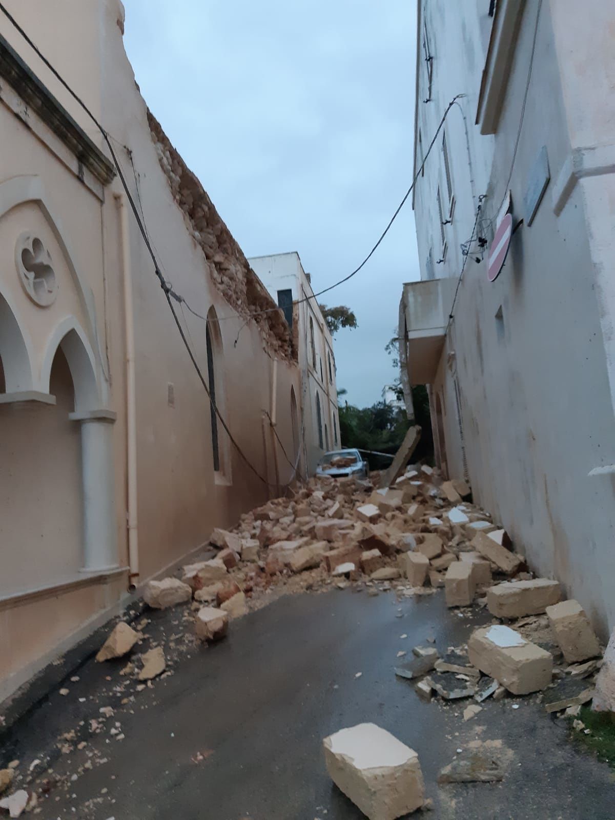 Crollato, anche, una parte del solaio della Chiesa della Madonna Assunta a Marina Serra.