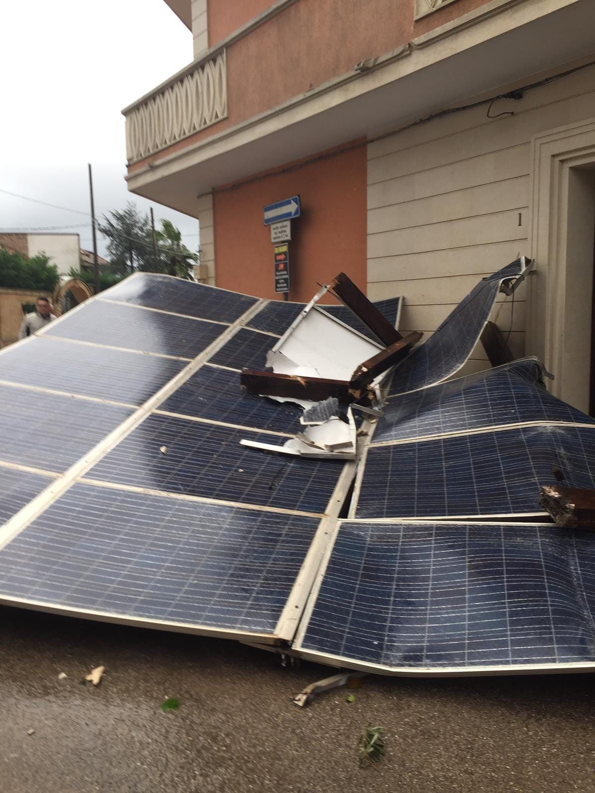 Tricase e molti comuni limitrofi hanno dovuto fare i conti con una violenta tromba d’aria che ha spazzato via tutto durante il suo passaggio: segnali, rami, cassonetti e persino alcuni pannelli fotovoltaici installati sul tetto di un’abitazione e scagliati contro un’auto parcheggiata in strada, non poco distante.
