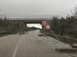 Non è andata meglio a Patù e dintorni, dove a creare danni è stato anche il vento forte. Anche in questa zona, a “volare” sono stati alberi e segnali stradali.