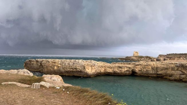 Sembrava, appunto, perché, nel pomeriggio di oggi, in barba a quanto previsto dalle previsioni, sulle marine di Melendugno si è abbattuta una forte tromba d’aria che ha provocato non pochi danni.