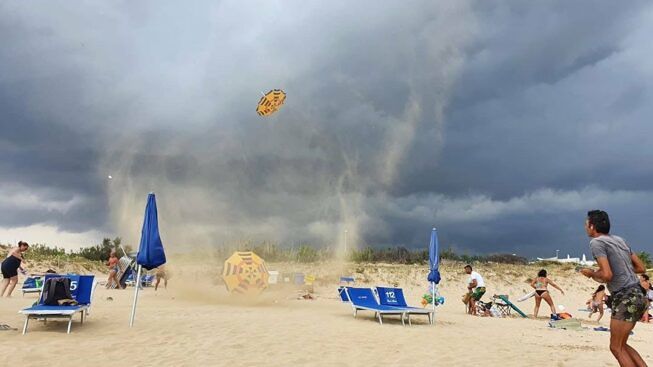 Il maltempo era stato annunciato, ma quello che non si può prevedere, non del tutto, è la furia con cui si presenta. Se in molti comuni i “temporali” previsti sono stati poco più di un acquazzone passeggero, in altri la pioggia è stata più abbondante creando non pochi disagi. Disagi e tanta paura che a Torre Vado, dove una violenta tromba d’aria ha spazzato via ombrelloni, lettini e creato non pochi danni agli stabilimenti balneari che si affacciano su quel tratto di costa, fino a Pescoluse. Una volta raggiunto il mare, si è lentamente dissolto.