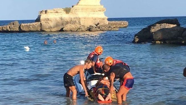 Dopo un volo di circa dieci metri, lo sfortunato turista ha urtato spalla e braccio sinistro contro uno scoglio. Subito dopo l’incidente, è scattato l’allarme da parte degli amici che hanno allertato il bagnino Lorenzo Tomasi che, in servizio presso la spiaggia di Torre Sant’Andrea, si è recato per prestare i primi soccorsi e, poi, ha allertato il Soccorso Medico Avanzato.