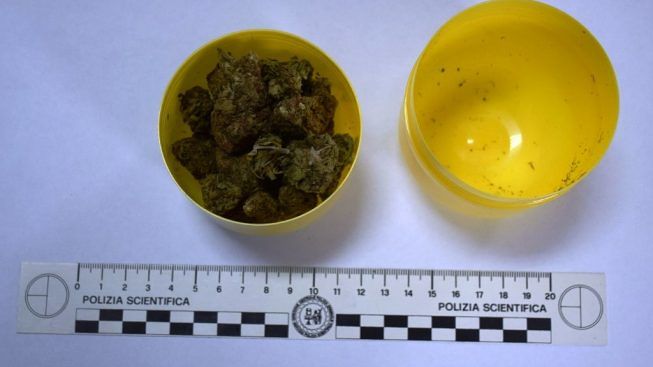 All’interno della serra era appoggiata una piantina di Marijuana, alta circa 50 centimetri, completa di vaso in plastica bianca. In uno scomparto dell’armadio, invece, sono spuntati fuori un bilancino elettronico di precisione ed un involucro in plastica a forma di uovo di colore giallo contenente vari tocchi di sostanza stupefacente, successivamente quantificata in 21,71grammi.