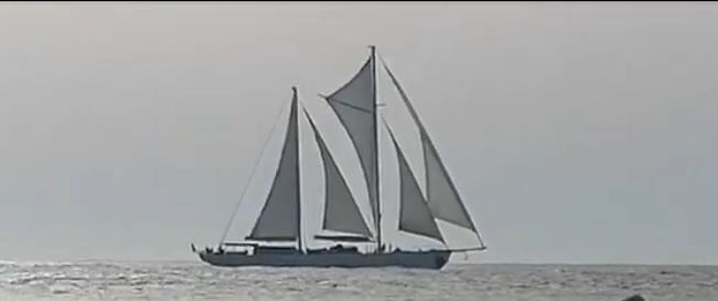 È stato avvistato, grazie allo scintillio argenteo che spiccava sul blu del mare calmo, il veliero extralusso “Rhea” che sta attraversando, in questi giorni, la costa jonica, da nord a sud, del Salento.