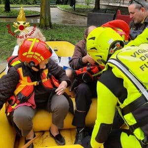 I soccorritori acquatici, stanno effettuando, a bordo di piccoli gommoni, attività di ricerca e soccorso. Attualmente, in Emilia Romagna, sono impegnati 750 Caschi Rossi, quasi 300 nella sola provincia di Forlì Cesena, 400 le unità giunte come rinforzo dalle altre regioni: 250 sono soccorritori acquatici, 65 esperti nelle operazioni di prosciugamento con pompe e idrovore, 15 sommozzatori. Dei 250 mezzi impiegati attualmente nei luoghi colpiti dal maltempo, 25 sono piccoli natanti, 4 gli anfibi, 5 elicotteri e 10 droni.