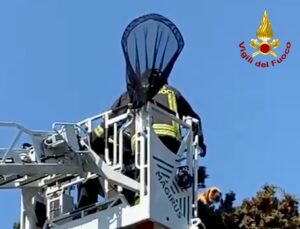 Secondo quanto dichiarato da chi ha richiesto l’intervento, la proprietaria del cane di nome Bianca, nel corso di una passeggiata, attratta da un gatto, il cane lo ha inseguito sin sopra all’albero, fino a quando non si è resa conto che non riusciva più a scendere. Con grande cautela i Vigili del Fuoco si sono avvicinati recuperando, con l’ausilio di un’autoscala, entrambi gli animali che stanno bene.