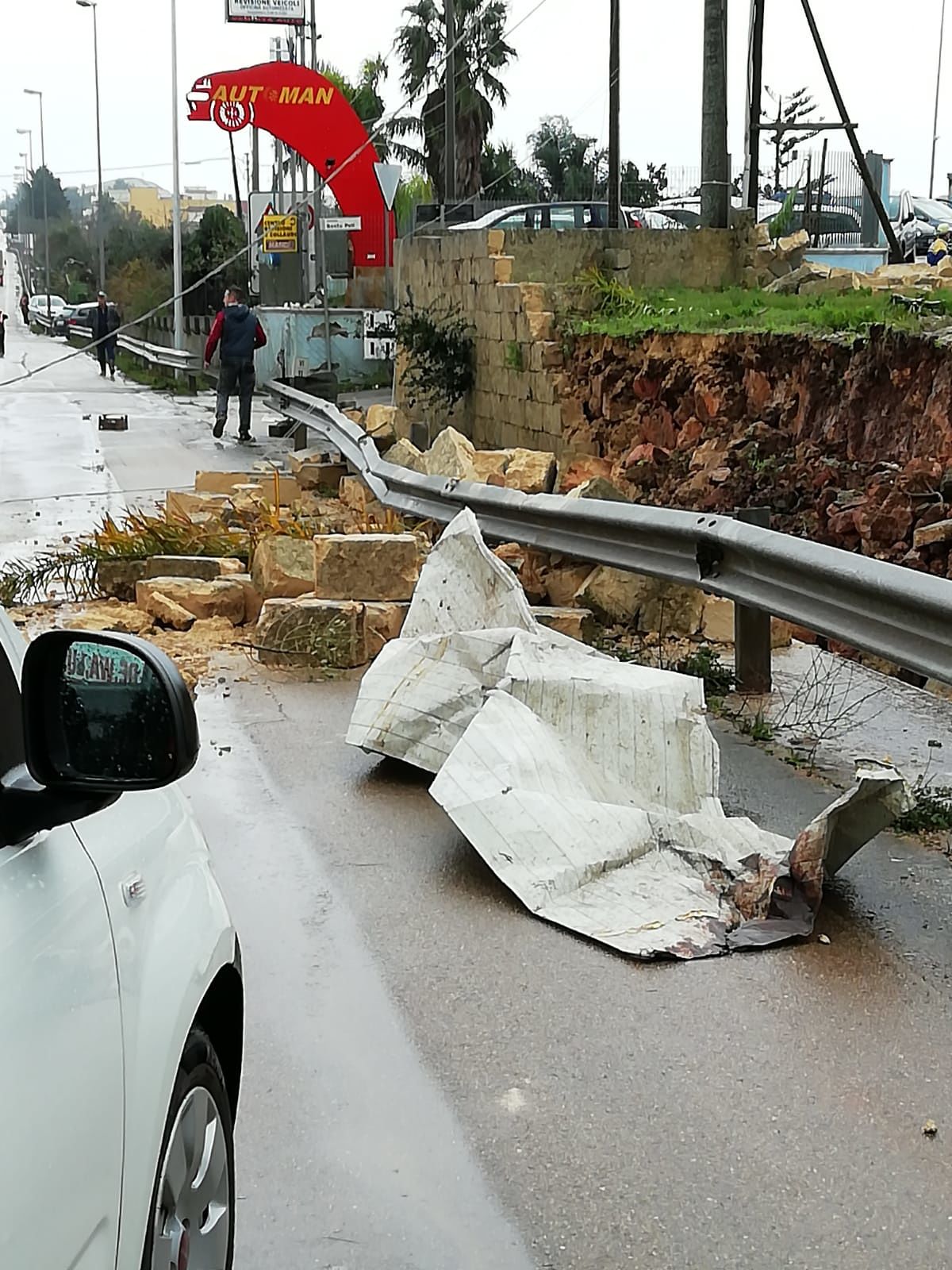 Chi è scampato per un soffio alla devastazione della tromba d’aria che in realtà si può anche definire un piccolo tornado, lo racconta con terrore: guardrail divelti, muretti abbattuti, arbusti spazzati via.