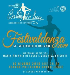 Si svolgerà mercoledì 19 giugno, con inizio alle ore 20.30, presso il Teatro Politeama Greco, “Festivaldanza 2019”, 54mo spettacolo di fine anno della scuola di danza “Il Balletto di Lecce”.