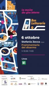 L’appuntamento di domenica 6, sempre sulla linea M1 e sempre dalle 10 alle 11, vedrà, invece, protagonista Stefania Zecca, giornalista, scrittrice e poeta che dal 2022 cura insieme a Simona Cleopazzo la collana “Prose minime”, con il suo “Frammentario del disarmo”. Raccolta di poesie, schegge di pensiero, appunti sull’amore, sul disamore e sulla vita a partire da una posizione chiara, annunciata fin dal titolo: che per scrivere occorra essere “disarmati”, “lasciare che accada il rischio della ferita”.