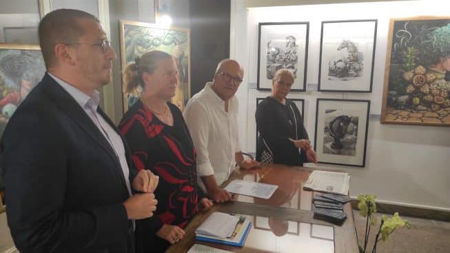 Tante autorità e tanti amici per l’inaugurazione della mostra di Giorgio Piccinno a Lecce nei locali della Società Operaia a ridosso della chiesa di Sant’Irene.