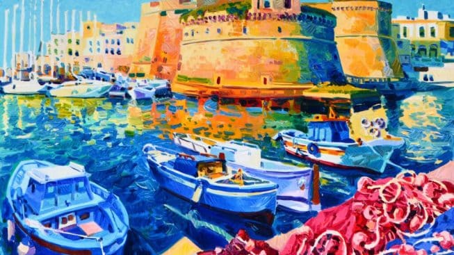 Opere che parlano di cielo, terra e mare, di un amore infinito per la luce e la natura, un tributo di arte e colore al Salento, terra dalle mille meraviglie.
