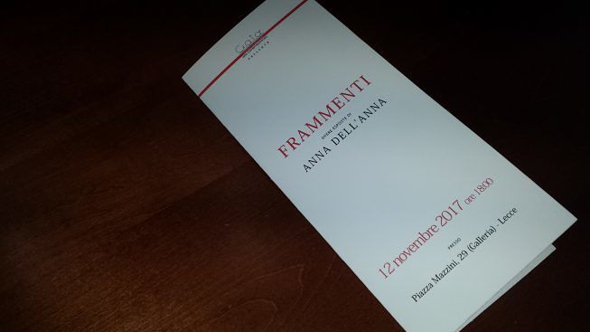 Un’opera d’arte può definirsi completa nel momento in cui chi la osserve riesce quasi a disvelarne il senso. L’intuito dello spettatore da un lato, la capacità comunicativa dell’autore dall’altro. Togliere, insomma, quell’alone di mistero tipico di ogni creazione. L’Estetica, dunque, può assumere milioni di forme. O magari, dei veri e propri “frammenti”. Non a caso, “Frammenti” è proprio il titolo della mostra curata dalla pittrice salentina Anna Dell’Anna ed organizzata da “G.a.i.a. – centro culturale arte contemporanea”, in programma Domenica 12 Novembre, alle ore 18.00, presso lo spazio allestito nella Galleria di Piazza Mazzini.