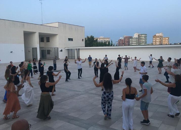 La serata è iniziata con i ballerini di pizzica che si sono messi a completa disposizione e hanno fatto da insegnanti – nel cortile della parrocchia – a chiunque volesse apprendere i passi della più famosa danza nostrana.