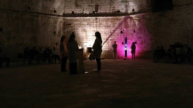 “Solstizio d’estate: mangiamo i frutti e conserviamo i semi”, portato in scena dagli artisti di ‘Atelier di Teatro Rituale’, condotto da Ilaria Mancino . Quest’ultima sacerdotessa o attrice? Non ci è dato comprenderlo definitivamente perché, sebbene si entrasse nel castello convinti di dover assistere ad uno spettacolo, è ad un vero e proprio rituale che si è preso parte: una meditazione di gruppo che connetteva intimamente pubblico ed attori.