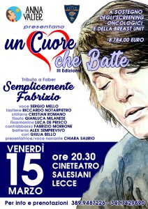 È con questi auspici che si naviga nella 3° edizione di “Un cuore che Batte“, l’evento in collaborazione tra l’ U.S. Lecce e l’Associazione Anna e Valter presieduta da Alfredo Fiorentino. Il ricavato dell’ evento sarà devoluto a sostegno degli screening oncologici e della Breast Unit, la struttura specializzata nella diagnosi, nella cura e nella riabilitazione psicofisica delle donne con la neoplasia mammaria al seno.