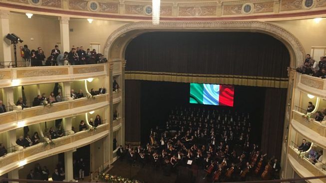Poi spazio alla musica: Ouverture di Rossini, la Traviata e il Nabucco di Verdi, la Cavalleria Rusticana di Mascagni. Gli applausi, le ovazioni, fino al 'Va Pensiero' e alla gioiosa 'Libiamo ne' lieti calici', brindisi bene augurante al termine della serata.