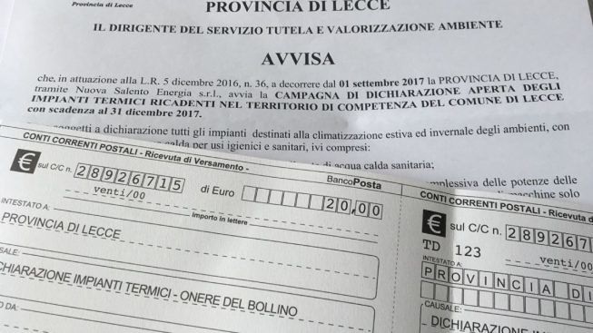 A decorrere dal 1 gennaio 2018 la Provincia di Lecce avvierà attività di ispezione e controllo per tutti gli impianti non dichiarati, con le stesse modalità descritte nell’avviso diramato dal dirigente di settore.