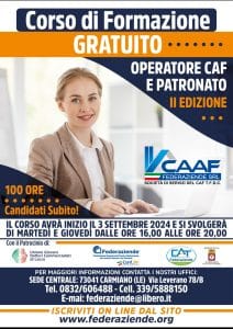 Federaziende, confederazione datoriale attenta alle necessità e alle nuove sfide del mercato del lavoro, propone la seconda edizione del corso gratuito per operatore CAF e patronato.