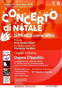 L’associazione “Cuore e mani aperte per chi soffre Onlus” organizza per sabato 15 Dicembre 2018, alle ore 19.30, presso la Cappella dell’ospedale Vito Fazzi di Lecce un concerto di Natale a scopo benefico.