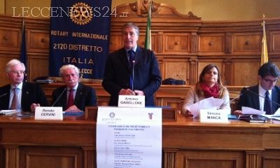 Il presidente della provincia di Lecce, Antonio Gabellone, apre con il suo saluto ai giovani presenti e alle istituzioni presentando un’iniziativa importantissima indotta dal Rotary club di Lecce prendendo in considerazione l’importanza nell’unione della formazione e della scuola.