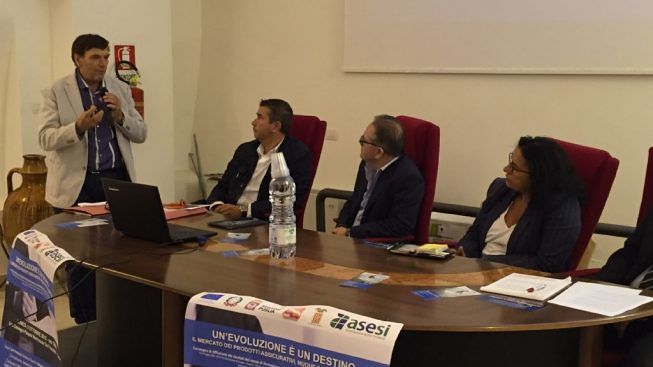 L’incontro, dal titolo “Un’evoluzione è un destino. Il mercato dei prodotti assicurativi, nuove sfide e prospettive”, è stato organizzato da Asesi – Associazione Servizi Sindacali ed è consistito nell’evento finale di diffusione dei risultati del Corso di Formazione Professionale per “Tecnico delle vendite di servizi assicurativi” (Por Puglia 2007-2013 Fondo Sociale Europeo – Asse II – Occupabilità “Interventi di formazione e di accompagnamento al lavoro” – Avviso pubblico Le/03/2013 – Azione 1 approvato con D.D. n. 478 del 07/03/2014, pubblicato sul Burp Puglia n. 71 del 05.06.2014).