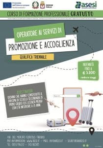 Per questo, Asesi – Associazione servizi sindacali – ha pensato ad un corso formazione professionale per Operatore ai Servizi di Promozione e Accoglienza rivolto ai giovani che hanno conseguito il diploma di scuola secondaria di primo grado (ex licenza media). Può partecipare chi non ha ancora compiuto 25 anni e non è in possesso della qualifica.