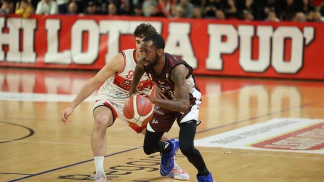 Di Carlo si affida all’inizio a Maspero, Smith, Ferrara, Stewart e Iannuzzi per provare l’assalto ai padroni di casa. Ma l’uomo più importante di Rimini, l’americano Johnson, parte a razzo con 10 punti in meno di quattro minuti. Nardò si affida soprattutto a Iannuzzi e Stewart, che cercano di contenere il passivo del primo quarto. La squadra di Dell’Agnello ha percentuali molto confortanti al tiro, ma spesso i granata si scordano di difendere dall’arco. Di Carlo prova a mischiare le carte con gli ingressi di La Torre prima e Parravicini poi, ma il grande assente di questa prima frazione è Smith (zero punti e 0/3 al tiro da due). Il time out del coach granata non sveglia il Toro, anzi negli ultimi 90 secondi Rimini prende il largo e chiude sul 27-13. Il secondo quarto si apre con il solito copione: Grande colpisce ancora con una tripla. Nikolic intanto ha preso il posto di Smith. Ma per Rimini adesso è tutto, troppo, facile contro un avversario inerme. Il vantaggio cresce addirittura a 21 punti. Servono più di tre minuti per il primo canestro ospite (con Donda in penetrazione), ma le difficoltà realizzative restano tutte. Nardò Basket al tiro ci arriva pure, la palla non entra. Rimini può permettersi di controllare senza patemi. Smith entra nel tabellino con i suoi primi cinque punti. Il finale del secondo quarto è tristissimo: 47-26. Nardò non c’è in difesa e non c’è in attacco con i suoi 10/31 da due e 1/4 da tre.