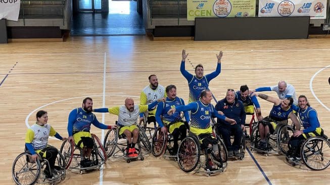 Per il terzo anno consecutivo la Lupiae Team Salento si qualifica ai playoff del campionato nazionale di Serie B di basket in carrozzina. Domenica mattina, infatti, i ragazzi di coach Andrea Calò, alla guida dei gialloblu da ben cinque anni, nel corso della sfida spareggio con il Palermo si sono imposti con il punteggio di 76-32 staccando matematicamente il biglietto per la fase finale: in palio c’è la Serie A.