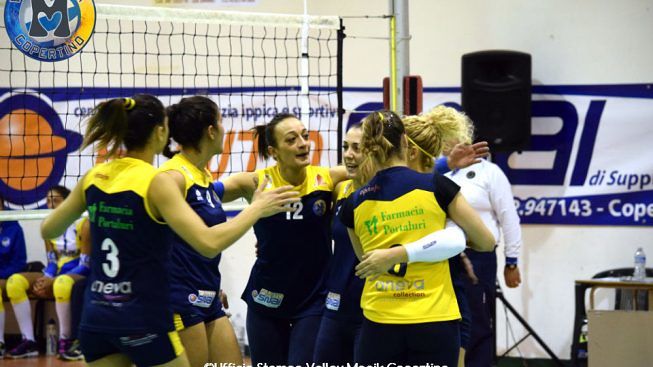 Durante l’intervallo mister Quarta scuote la sua squadra che all’inizio del secondo set parte subito bene in battuta. Montescaglioso va in difficoltà con la ricezione ma resta comunque incollata. Ha buon gioco il muro-difesa di Copertino e la squadra ospite ci mette del suo con alcuni errori gratuiti. La diagonale copertinese trova il giusto ritmo sia al centro che con la fast mentre le lucane faticano ad attaccare con continuità e non impensieriscono mai la seconda linea delle gialloblu. Il tecnico lucano prova ad attingere dalla panchina per modificare l’assetto tattico, ma il set ormai è nella casella della Magik che chiude 25-16. Il terzo set evidenzia il divario tecnico tra le due formazioni e diventa solo una formalità per le copertinesi, superiori in ogni fondamentale, che chiudono definitivamente i conti sul 25-9.