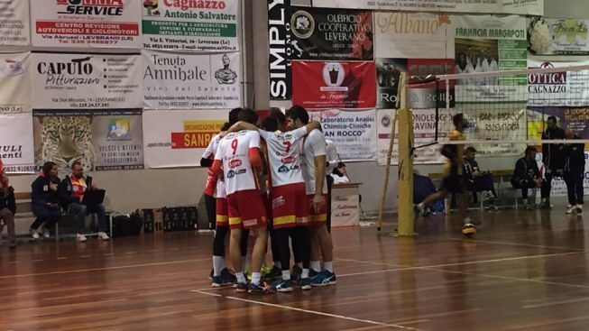 Una gara spettacolare e piena di colpi di scena, questo basta per descrivere quanto visto in campo. In avvio di primo set è l’equilibrio a prevalere, le due squadre si studiano e concedono poco ma al primo time out tecnico. Sono i giallorossi tavianesi a condurre (7-8). Al rientro la formazione leveranese difende bene mentre gli attacchi delle bocche di fuoco di Taviano sbattono sul muro avversario. I ragazzi di mister Licchelli appaiono in difficoltà, sorpresi dalla gara della Bcc che inizia a prendere il largo mettendo in seria difficoltà la Pag (16-10). Taviano non riesce a reagire con i gialloblù che hanno vita facile e si portano sul 20-13. Battilotti e compagni provano a impensierire la Bcc e con 3 punti consecutivi riducono lo svantaggio sino al 20-16 ma Leverano, con un’ottima pallavolo e una grande intesa, riesce a chiudere il primo set senza troppi patèmi con il punteggio di 25-18.