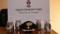 Il fiuto del cane Amun del Nucleo cinofili di Bari ha permesso ai carabinieri della stazione di Taviano, insieme ai colleghi di Racale di scoprire sotto il materasso 300 grammi di marijuana nascosti in 4 barattoli. Ai domiciliari finisce Loris Pasquale Casarano
