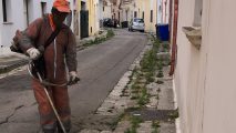 Il murale, realizzato a pittura e spray, presenta una parte più luminosa, con il volto del maestro siciliano, e una più scura, con la fedele macchina da scrivere