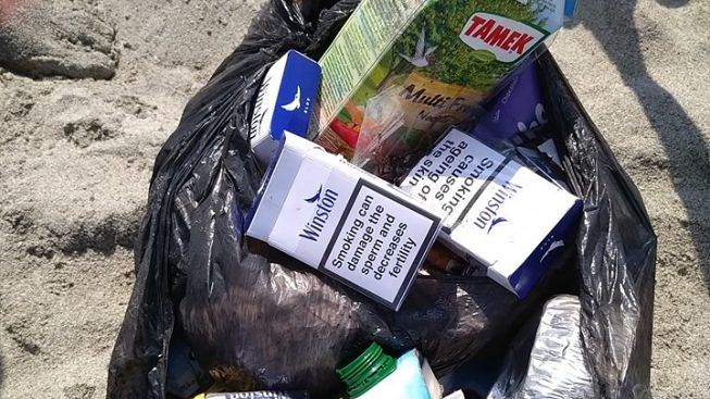 In mattinata, presso la spiaggia dei Marangi, una donna ha raccolto un sacchetto nero contenente rifiuti lanciati in mare dall'imbarcazione battente bandiera tedesca ormeggiata nella marina di Melendugno.