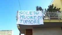 I cittadini si mobilitano contro l'inquinamento, i fumi industriali, la distruzione del territorio e i tumori. Al balcone un lenzuolo bianco per protesta.