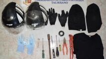 All’interno del mezzo sono stati trovati un passamontagna e strumenti atti allo scasso, tra cui diversi cacciaviti, una chiave inglese ed un piede di porco.