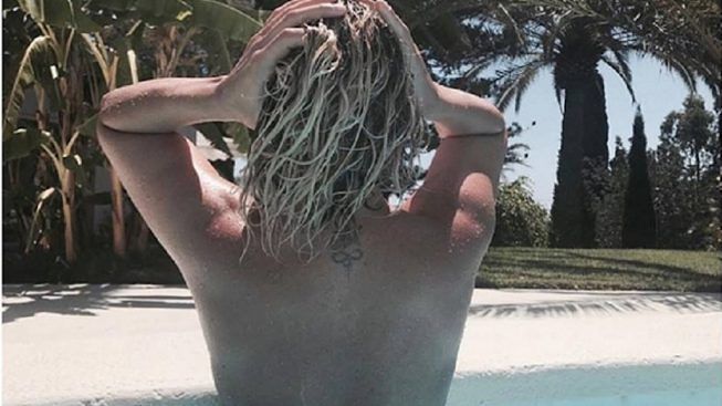 La foto che ritrae la cantante senza pezzo di sopra del costume, fa il paio con quella postata qualche giorno prima che mostrava il ‘reggiseno’ galleggiare nell’acqua della piscina.