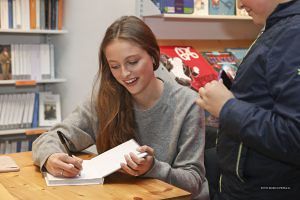 Attrice, modella, scrittrice e anche star dei social. La studentessa milanese (frequenta il liceo linguistico a Como) è l’idolo dei italiano dei Millennials, su Instagram – dove è seguitissima – può vantare oltre 625 mila follower. Insomma, un successo che ha fa intuire come mai il firma-copie della Libreria a pochi passi da piazza Sant’Oronzo sia stato preso d’assalto. E lei ha incontrato ad uno ad uno tutti i fans che, nonostante la pioggia, hanno fatto la fila con gli ombrelli pur di avere una copia autografata.