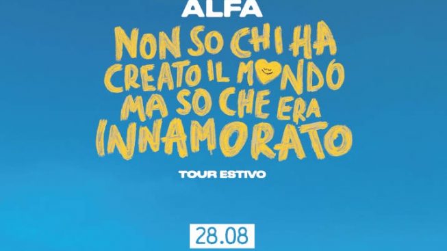 Alfa sarà a Nardò dopodomani, mercoledì 28 agosto, per una tappa di “Non so chi ha creato il mondo ma so che era innamorato”, il tour estivo che prende il nome dal suo ultimo lavoro, uscito a febbraio. L’album, composto da dieci canzoni, contiene “Vai!” (certificato doppio disco di platino), il brano presentato al Festival di Sanremo con cui ha conquistato giovani e meno giovani, insieme all’emozionante duetto con Roberto Vecchioni, portandolo ad essere considerato la rivelazione del Festival.